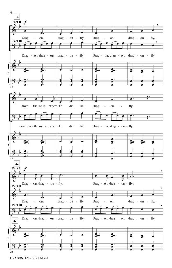 Cette œuvre de concert vive pour jeunes voix illustre l’émergence de la libellule adulte avec ses ailes éblouissantes en saphir semblables à des bijoux à travers des lignes vocales superposées et une sensation de 6/8 à 3/4 métriques. Accessible mais satisfaisante, cette sélection sera parfaite pour un concert, un concours et un festival ! Disponible séparément : mixé en 3 parties, aigu en 3 parties, CD VoiceTrax. Durée : environ 2:45.