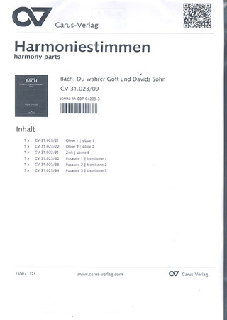 Du Wahrer Gott Und Davids Sohn (1. Fassung) BACH JOHANN SEBASTIAN
