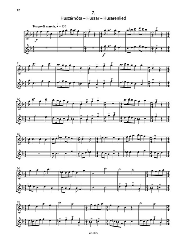 Les chœurs d’enfants et de femmes furent composés dans un seul élan d’activité créative au sommet de la carrière de Bartók, à l’été 1935, entre des chefs-d’œuvre tels que le Quatuor à cordes #5 et la Musique pour cordes, percussions et célesta. Ces courtes pièces chorales sont basées sur des textes folkloriques que Bartók a encore poli et stylisé. La musique, cependant, est entièrement propre au compositeur, bien qu’elle inclue fréquemment des motifs, des formules rythmiques et des structures de lignes rappelant les chansons folkloriques hongroises. Les deux éditions contiennent neuf des pièces en deux parties de l’ensemble, transcrites de manière idiomatique mais fidèle pour flûtes à bec descant et aiguë, respectivement.