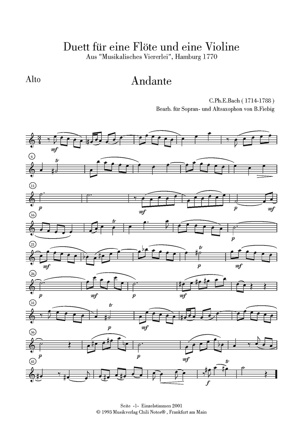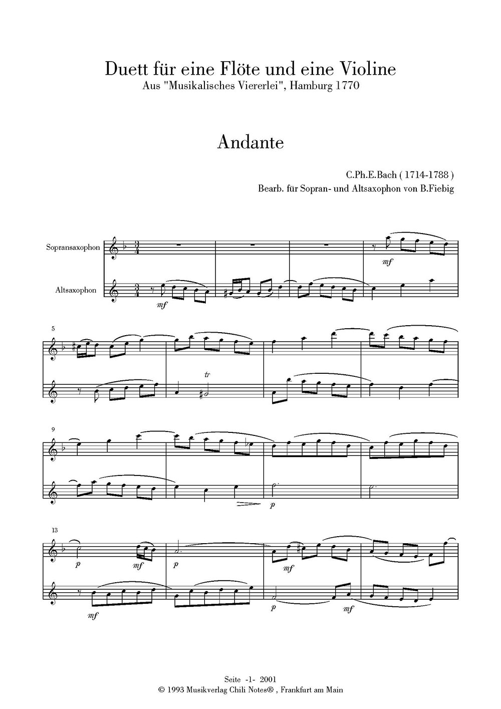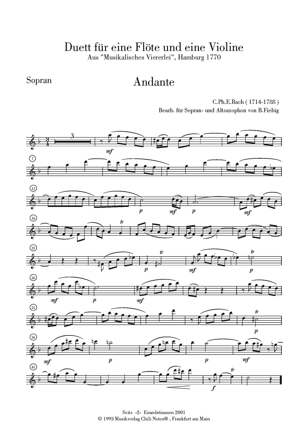 Duett für eine Flöte und eine Violine BACH CARL PHILIPP EMMANUEL