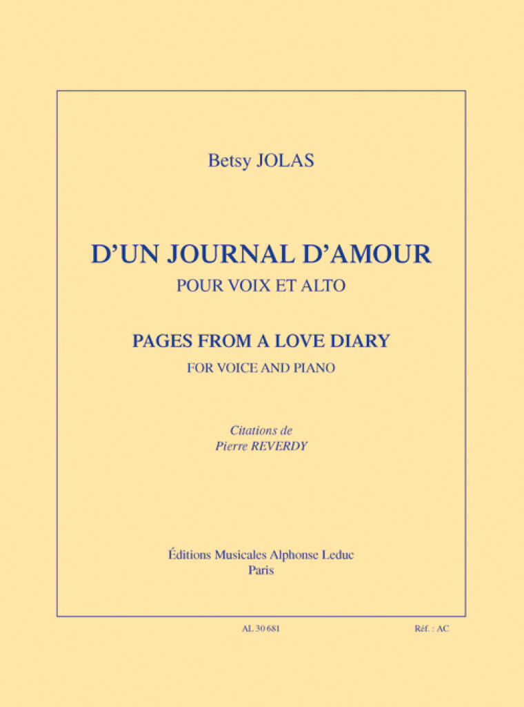 D’Un Journal D’Amour JOLAS BETSY