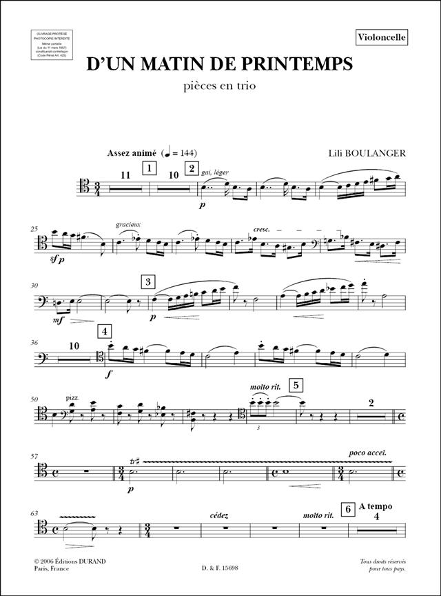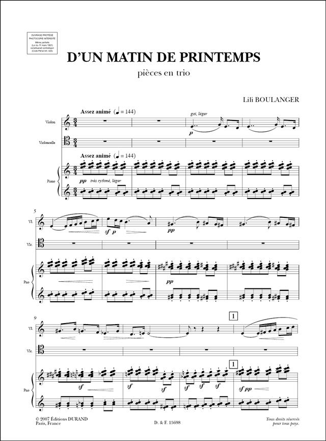 D’Un Matin De Printemps Pour Violon, Violoncelle Et Piano BOULANGER LILI