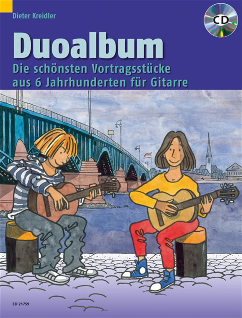 Forming an integral part of the repertoire of guitar players, duos have enjoyed great popularity throughout all stylistic periods until today. Selected by experienced teachers, the wide range of titles covering many different styles in Duoalbum introduce young musicians not only to masterpieces by major composers but to new compositions and arrangements suitable for early lessons.