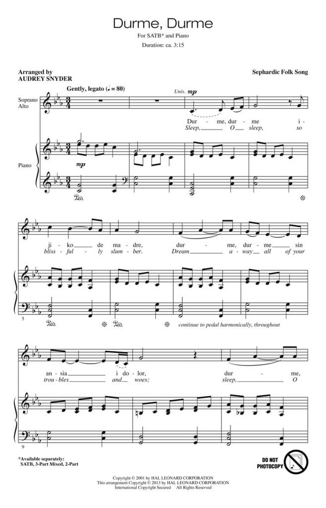 Désormais disponible en voix SATB, cette simple chanson folklorique séfarade offre un message tendre accompagné d’un accompagnement doux et fluide. Une merveilleuse sélection de concert/festival ! Disponible séparément : SATB, 3 parties mixtes, 2 parties. Durée : environ 3:15.