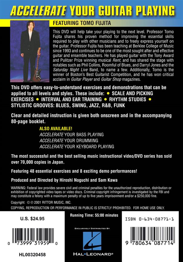 Méthode éprouvée de guitare de Tom Fujita est une méthode éprouvée expresse de prendre votre jouant au prochain niveau. Il enseigne les compétences essentielles et les techniques fondamentales pour vous permettent de jouer avec d'autres musiciens et de vous exprimer librement sur cet instrument polyvalent. Convenant à tous les niveaux et les styles, les faciles à comprendre des exercices et des démonstrations sauront vous intéresser et à l'aide de votre progression. Le DVD et le livret de 80 pages instruction qui l'accompagne, faire un succès guides didacticiel avec sur et hors écran afin de maximiser l'apprentissage. Comprend : Echelle et choisir des exercices intervalle et l'oreille rainures stylistiques de formation rythmique des études de blues, de jazz, RandB et funk.
