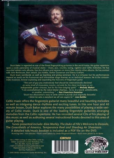 Musique celtique offre le guitariste fingerstyle beaucoup de belles et haunting mélodies, ainsi que des rythmes de danse intrigante et passionnant tunes. Canard Baker est un des guitaristes fingerstyle leader, organisant des mélodies de la vaste répertoire celtique. Dans ce DVD, canard explore les possibilités de jouer une grande variété de musique celtique sur votre guitare. Le caractère et la convivialité du style celtique est habilement transmise ici et avec une sélection de pièces pour apprendre et pratiquer les compétences, vous seront bientôt être ajout cueillette mélodique et arpèges à votre propre jeu. Avec un livret de musique de 24 pages.