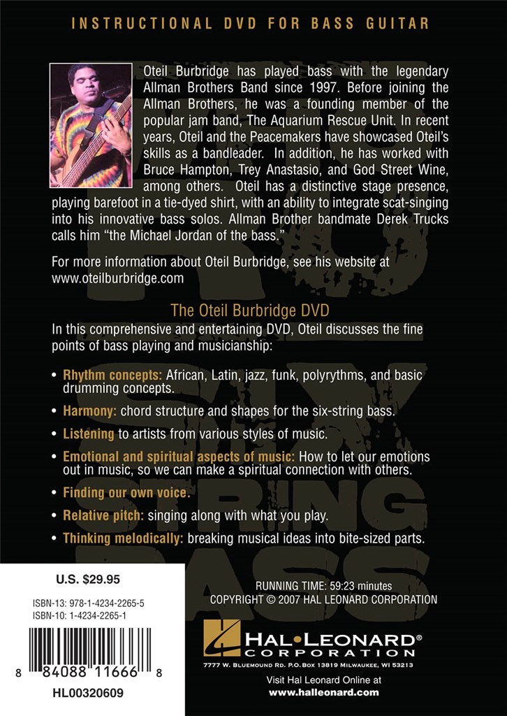 Oteil Burbridge est le bassiste du groupe " Allman Brothers Band ". Dans ce DVD il a rencontré ses talents de musicien à votre service. 1 heures, en anglais.