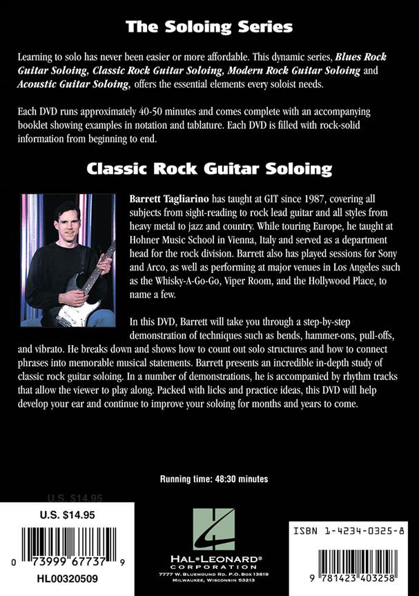 S'attaquent tous les éléments essentiels qui a besoin de chaque assistant de guitare à et commencez à construire quelques solos de guitare rock classique avec un kaléidoscope de sons ! Maître tutor Barrett Tagliarino vous guide étape par étape à travers des techniques comme la chaîne-coudes, hammer-ons, pull-offs et vibrato. Apprenez comment construire un solo et comment connecter vos idées d'expression dans les déclarations musicales mémorables. Il y a une multitude de pistes rythmique inclus qui vous permettra de jouer le jeu et vraiment avoir un aperçu d'être dans un groupe. Débordant d'idées pratiques, ce DVD contribuera à développer votre oreille et continuer d'améliorer votre isolation pour les mois et années à venir. Comprend une brochure complète des exemples dans l'onglet.