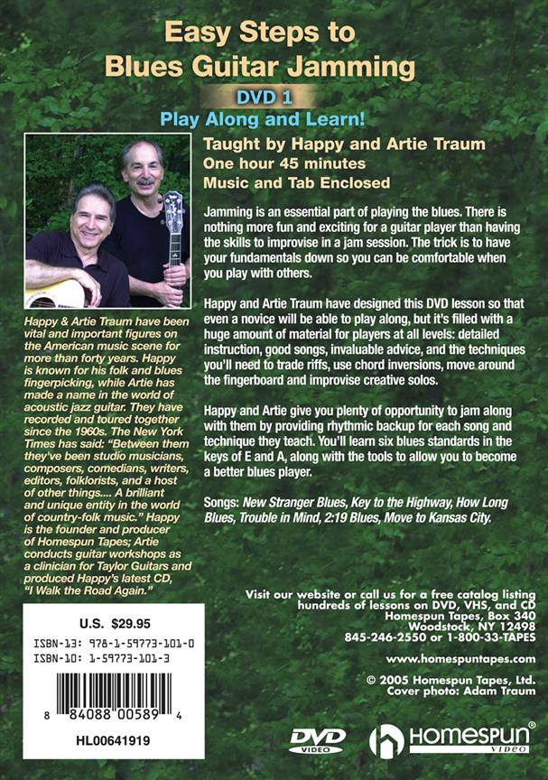 La capacité de jam est un élément vital du blues jouant, et cette leçon de DVD est conçue et présentée par Happy et Artie Traum pour vous enseigner exactement comment c'est fait. Le blues est unique, car il offre une structure très stable mais dynamique à l'improvisation sans la nécessité d'une théorie harmonique avancée. Artie et de Happy de livraison unique et inimitable obtiendrez vous jouer tout de suite et la leçon est emballée à des instructions détaillées, des conseils pratiques, des bonnes chansons et toutes les techniques dont vous aurez besoin au commerce des riffs, utiliser des inversions de corde et bien plus encore. Vous beaucoup d'occasion de confiture aurez avec les gars eux-mêmes, puisqu'elles fournissent une totale rythmique vers toutes les chansons qu'ils enseignent, y compris les six normes blues classique dans les clés de e et a.