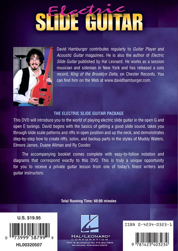 Obtenez votre premier aperçu de la guitare slide et les tons de blues d'un open-tuning que vous recevez une leçon privée de l'un des meilleurs écrivains d'aujourd'hui et les instructeurs de la guitare. Dans ce DVD Hamburger vous présente le g ouvert et ouvrir les ajustements apportés E, commençant par les rudiments d'obtenir une bonne diapositive sonore. Vous apprendrez diapositive échelle patrons et riffs en position ouverte et jusqu'au cou, ainsi que la façon dont pour créer vos propres riffs, des solos et des accompagnements dans les styles des héros de blues Muddy Waters, Elmore James et ouverte-tuning masters Duane Allman et Ry Cooder. Inclut un livret avec la notation facile à suivre et des diagrammes.