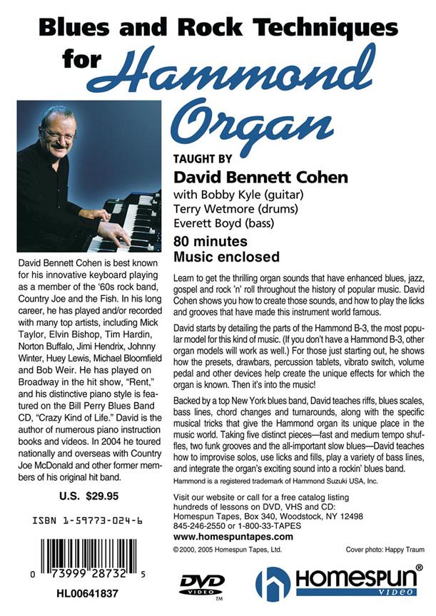 Dvd Hammond Organ Blues And Rock Techniques D.Cohen HAMMOND JOHN