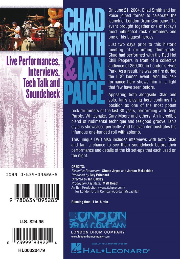 Concert et interviews des deux batteurs. Deux jours avant de joindre ses forces à Ian Paice, Chad Smith avait donné un concert avec les Red Hot Chili Peppers dans Hyde Park face à un public de 250 000 personnes. Toute l'énérgie puisée dans ce concert apparaît lors de se démonstration avec Ian Paice. Ce dernier est reconnu comme l'un des meilleurs batteurs des 30 denières années. il a joué avec Deep Purple, Whitesnake, Gary Moore... 1h20, en anglais.