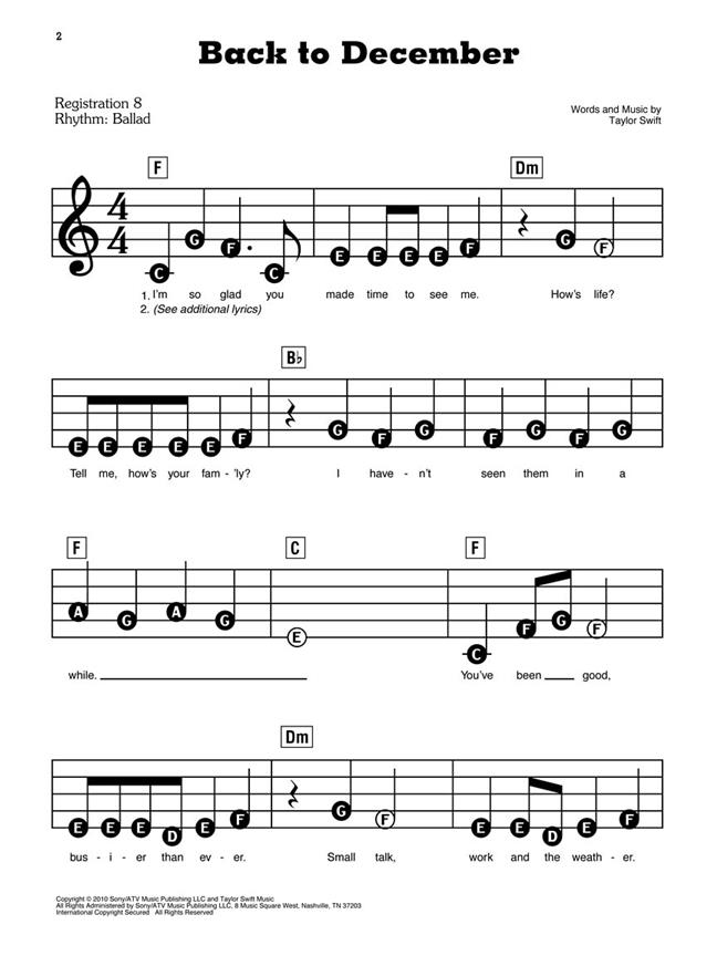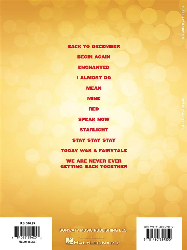 Cette édition de la série de jeu EZ Aujourd'hui dispose d'une douzaine de coups massifs de Taylor Swift, le tout dans un grand, facile à lire la notation - parfait pour les débutants! Les chansons incluent: Back to December - Begin Again - Enchanted - I Almost Do - Mean - Mine - Red - Speak Now
