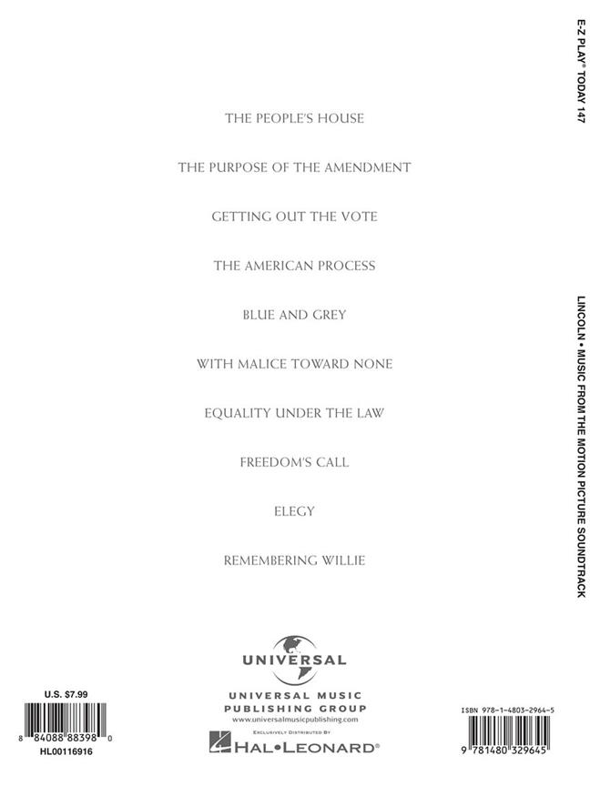 10 superbes compositions de John Williams ce film oscarisé, le tout dans Hal Leonard célèbre EZ Play ® notation.