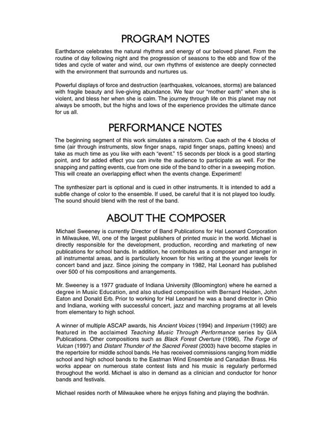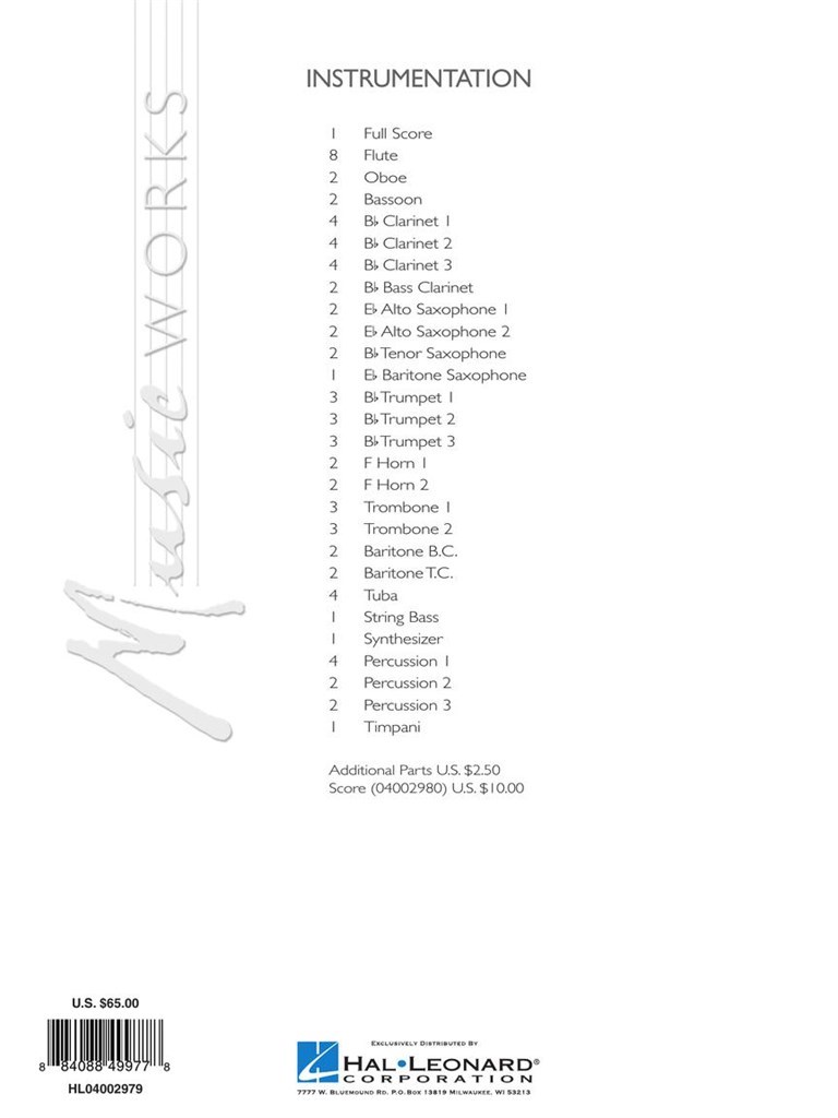 In celebration où mankind' s connection to our planet, Michael has created an extraordinary work for band using an intriguing array où composition devices and captivating melodies. Listeners are immersed in a simulated rainstorm,the sounds où world drumming, overlapping tone clusters and textures, and finally a dance où Jubilation as the piece comes to a satisfying and rewarding finish. Durée: 7: 30