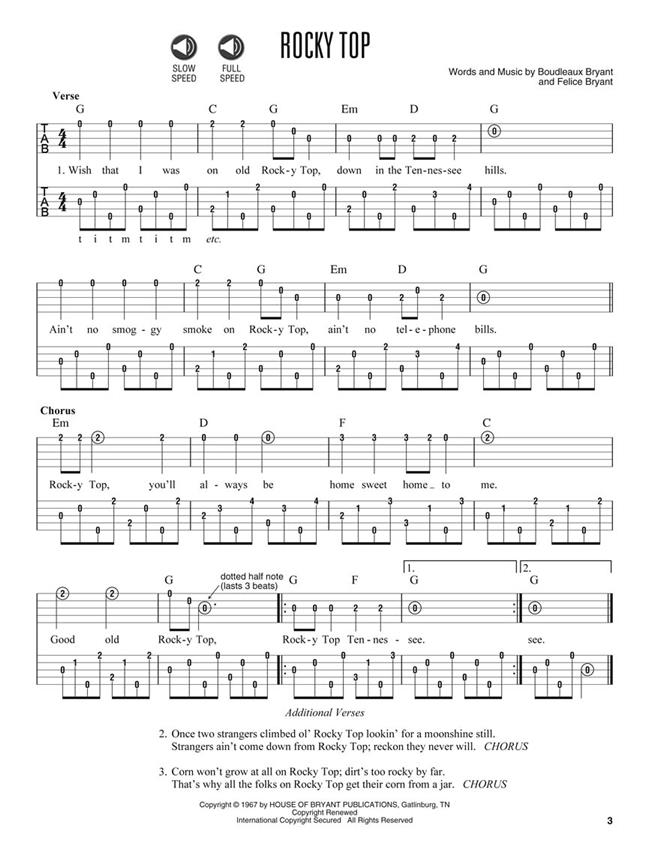 This songbook includes the favourites Ashokan Farewell, Black Diamond, Hey, Good Lookin', I'll Fly Away, Nine Pound Hammer, Rocky Top, This Land Is Your Land, Wagon Wheel and more.