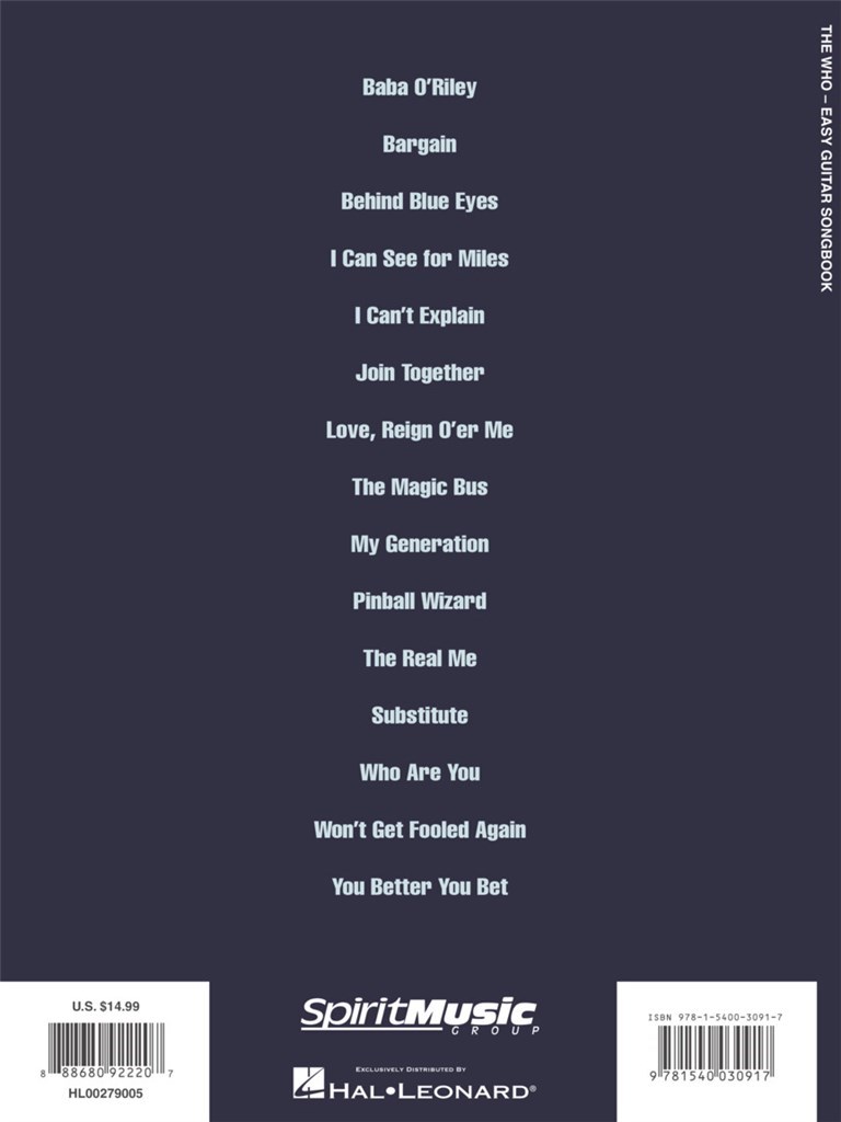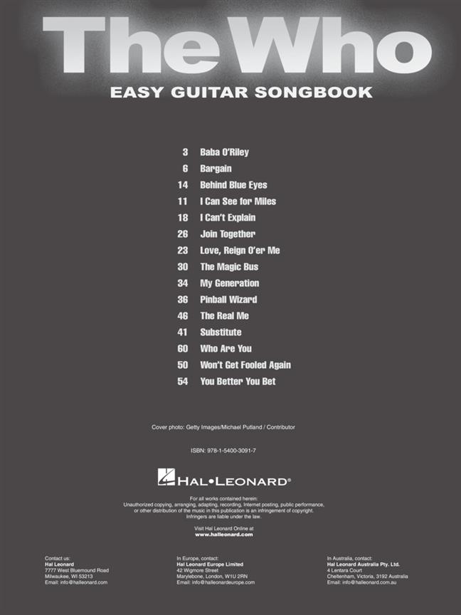 Easy Guitar Songbook WHO THE