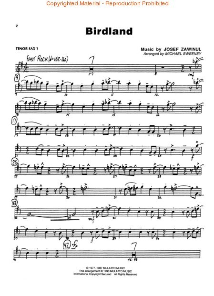 Birdland Born To Be Wild Eli’s Comin’ Here, There And Everywhere How High The Moon Malaguena A Night In Tunisia The Peanut Vendor (El Manisero) Shake, Rattle And Roll Stompin’ At The Savoy A String Of Pearls Summertime Take The ‘A’ Train Watch What Happens Yardbird Suite