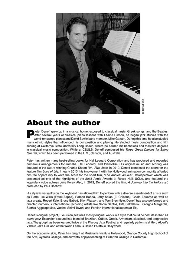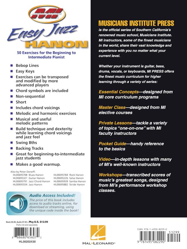 Cette leçon individuelle avec Peter Deneff, instructeur du Musicians Institute, propose 50 exercices pour le pianiste débutant à intermédiaire, couvrant : les lignes de bebop · Symboles d’accords · Voicings d’accords · Exercices mélodiques et harmoniques· Motifs musicaux et mélodiques utiles · swing 8 · et plus encore. Ça fait un bon échauffement ! Le prix de ce livre inclut l’accès à des pistes d’accompagnement en ligne, en téléchargement ou en streaming. L’audio est accessible en ligne via le code unique de chaque livre et peut être diffusé en streaming ou téléchargé. Les fichiers audio incluent PLAYBACK+, un lecteur audio multifonction qui permet de ralentir le son sans changer de hauteur, de régler des points de boucle, de changer les touches et de faire un panoramique à gauche ou à droite.