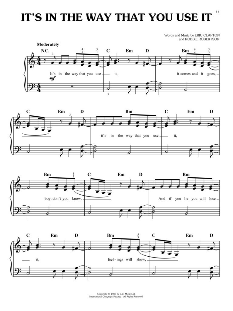 1 des chansons les plus populaires du guitariste et chanteur légendaire Eric Clapton sont présentées dans cette collection pour piano facile avec paroles.