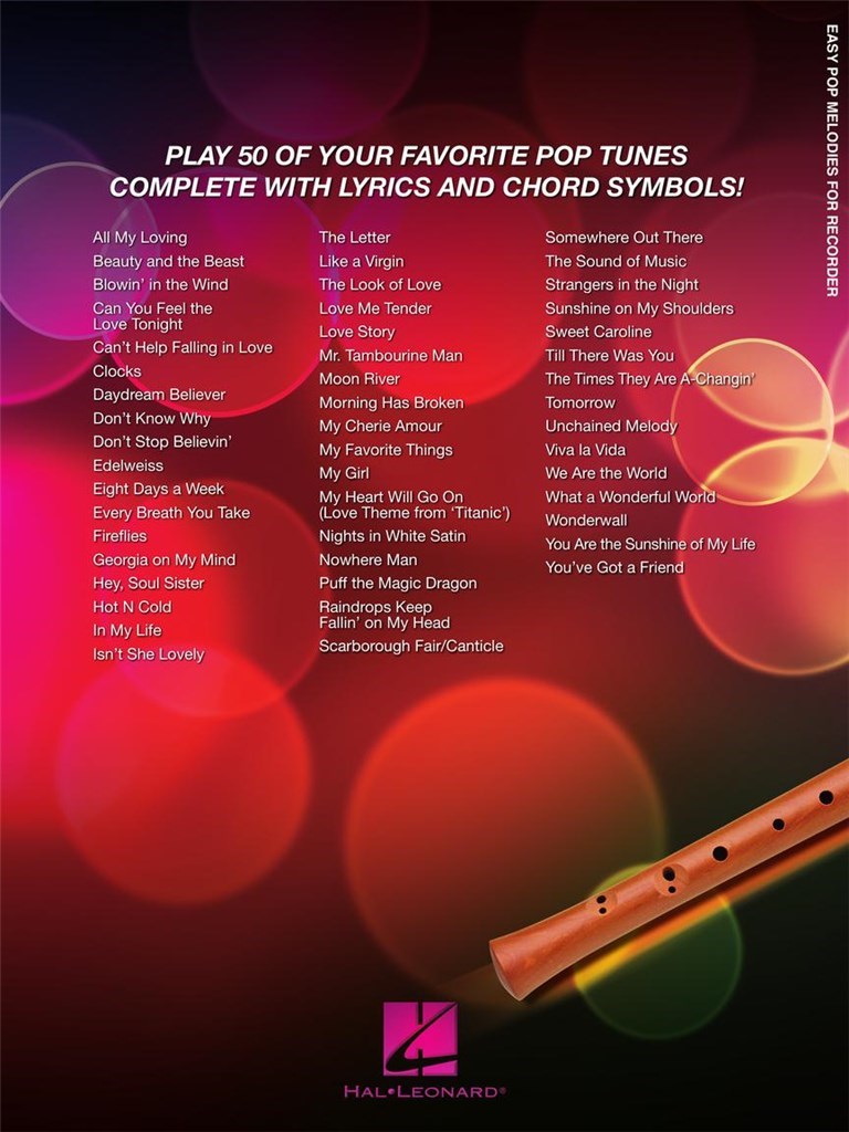 Jouez 50 de vos morceaux pop préférés sur l’instrument de votre choix ! Cette collection propose des arrangements écrits dans des tonalités et tessitures accessibles, avec des paroles et des symboles d’accords. Les chansons incluent : All My Loving · Soufflant dans le vent · Horloges · Ne cesse pas de croire · Chaque respiration que tu prends · Lucioles · Salut, Soul Sister · Dans ma vie · Histoire d’amour · My Girl · Nuits en satin blanc · Douce Caroline · Mélodie Libérée · Viva La Vida · Quel monde merveilleux · Tu as un ami · et plus encore.