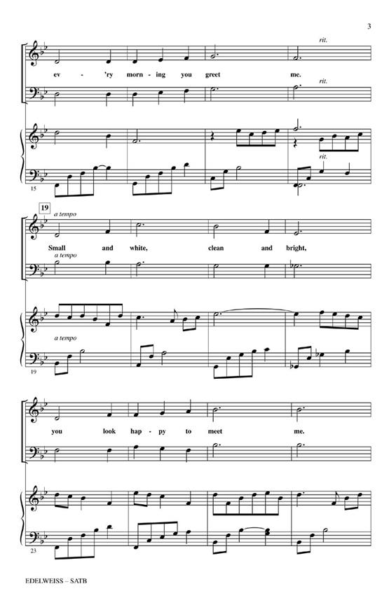 Ce morceau populaire et mémorable tiré de The Sound Of Music de Rodgers et Hammerstein a été arrangé par Linda Spevacek pour chœur SATB et accompagnement au piano.