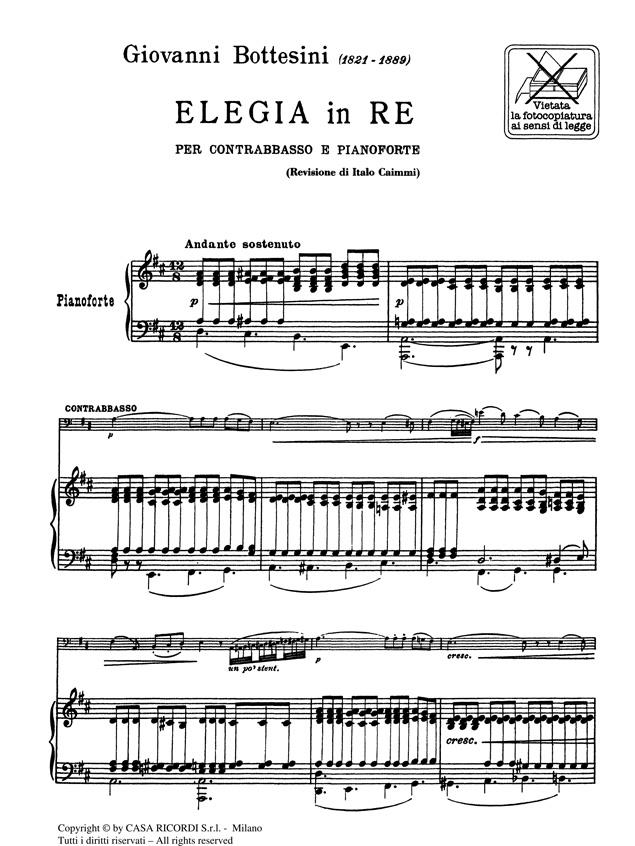 Elegia In Re Per Contrabbasso E Pianoforte BOTTESINI GIOVANNI