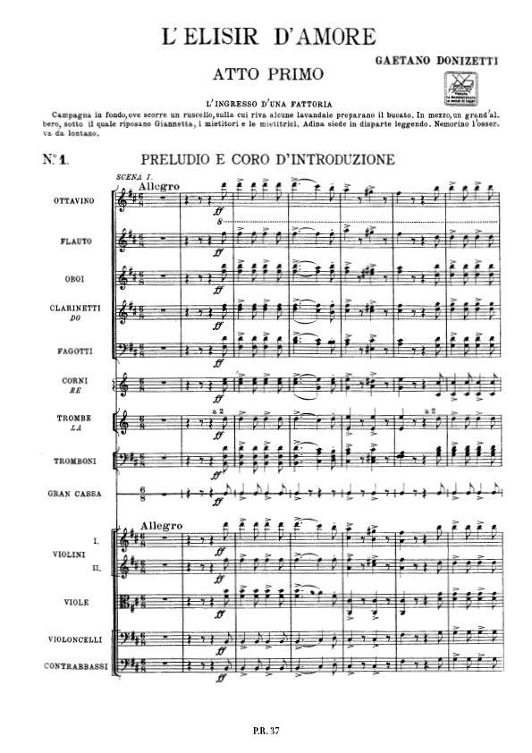 Full score for Donizetti's 1832 opera Elisir D'Amore.