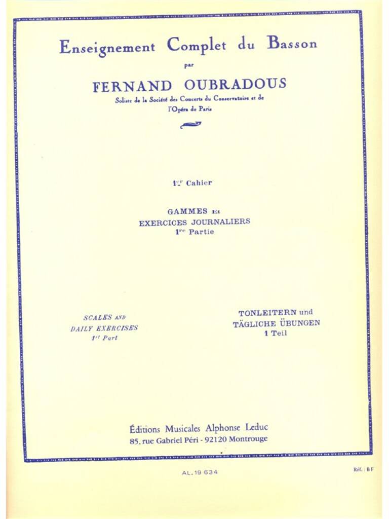Enseignement Complet Du Basson Vol.1 : Gammes Et Exercices Journaliers 1ere Ptie OUBRADOUS