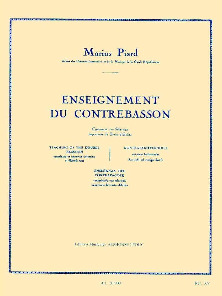 Enseignement Du Contrebasson Méthodes Contra Bassoon Book PIARD MARIUS