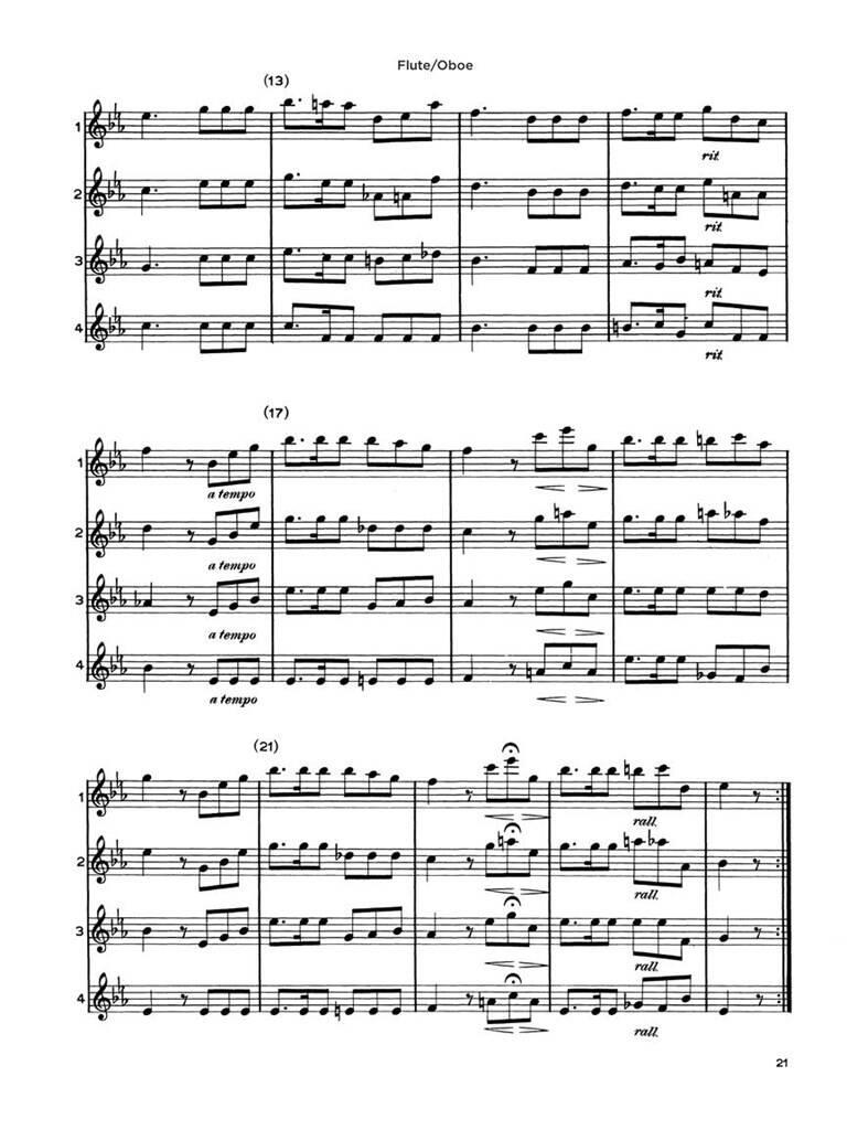 Une abondante collection d’ensembles de grade 1 à 2 pouvant être joués par n’importe quelle combinaison de 3 flûtes, clarinettes, hautbois, saxophones, trompettes ou violons ou au même niveau. Comprend des chansons et des rondes traditionnelles, ainsi que des arrangements de niveaux de base de chansons de Bach, Schubert, Stephen Foster, Lehar, Weber, Mendelssohn et bien d’autres.