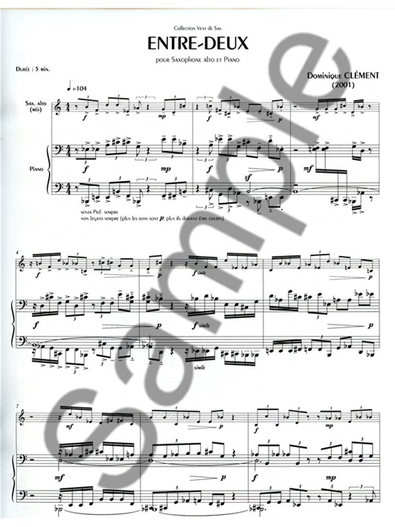 Entre Deux Alto Saxophone And Piano Book CLEMENT DOMINIQUE