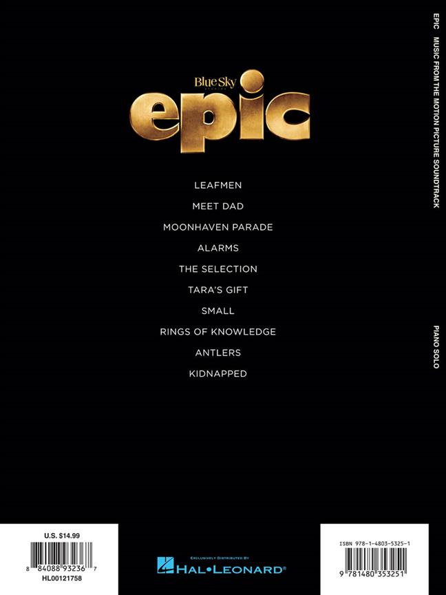 Danny Elfman a composé la musique originale pour Epic qui sert de toile de fond à ce film d'animation, qui comprend les voix de Beyoncé, Pitbull, Steven Tyler, et d'autres célébrités comme les personnages principaux.