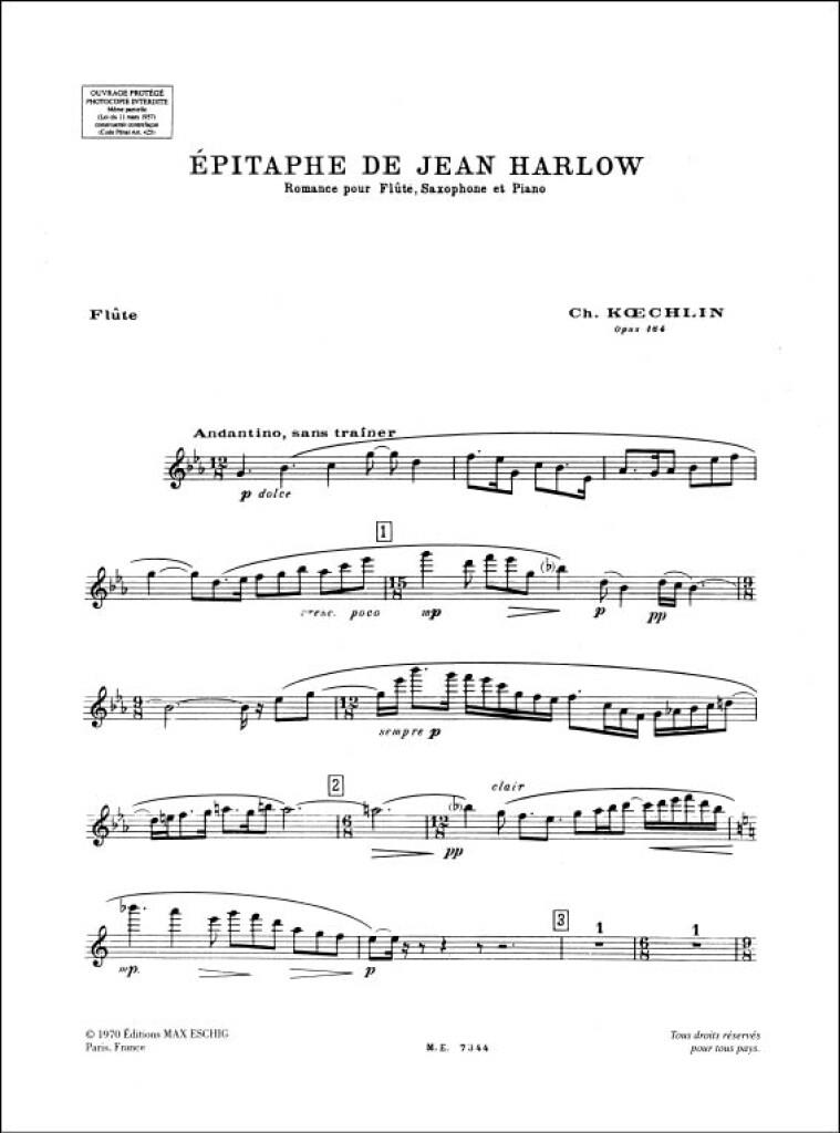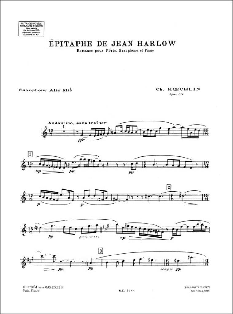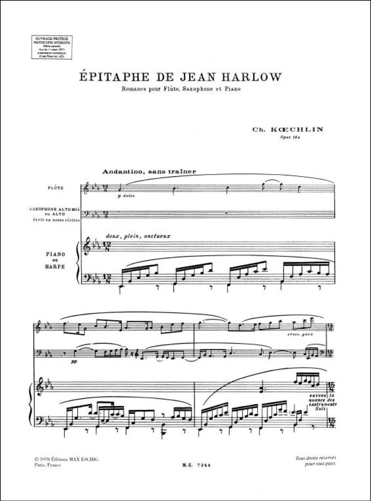 Epitaphe De Jean Harlow KOECHLIN CHARLES