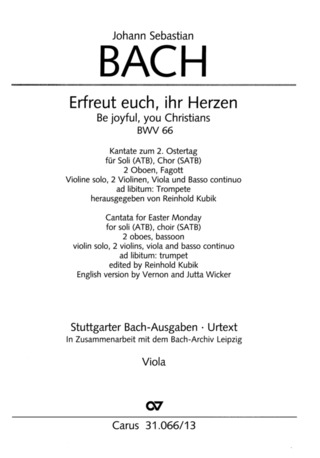 Gattungen: Kantaten Reihen bei Carus: Stuttgarter Ausgaben (Urtext) Verwendung / Kirchenjahr: Ostern und nachösterliche Freudenzeit