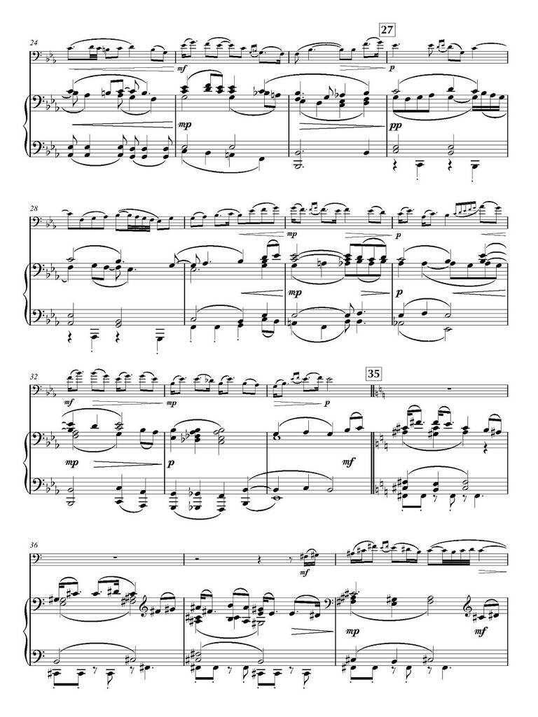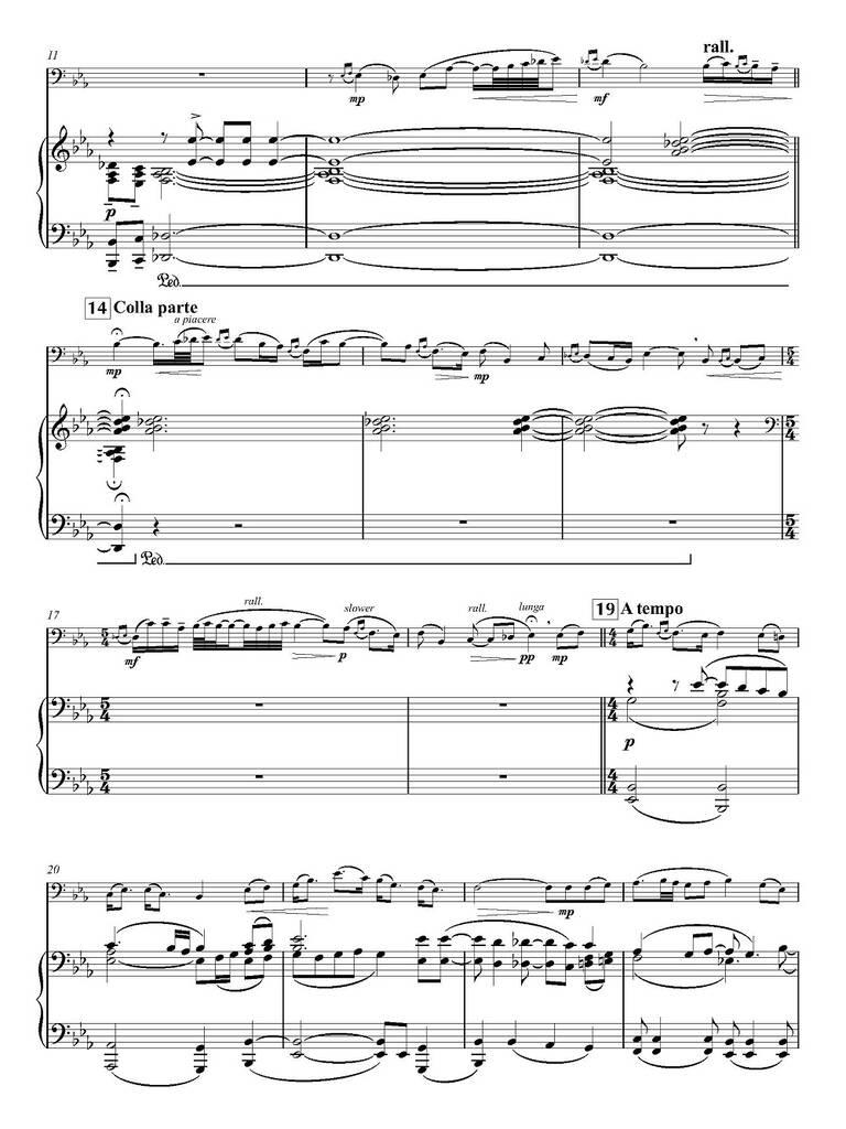 L'œuvre s'ouvre sur de doux clusters au piano sous lesquels apparaît un thème hésitant. Celui-ci conduit à une cadence accompagnée pour le/la soliste, d'où émerge le thème principal. C’est une mélodie longue et expansive, qui serpente à travers plusieurs phrases apparentées dans une ambiance folklorique. Un changement de tonalité annonce des bribes du thème par le piano avec des interjections du/de la soliste, ce qui conduit à une deuxième cadence. Finalement, le piano reprend le thème principal, sur lequel l'euphonium tisse une contre-mélodie élaborée. Le passage d’ouverture revient pour permettre à l’euphonium d’achever l'œuvre par une brève coda fleurie.