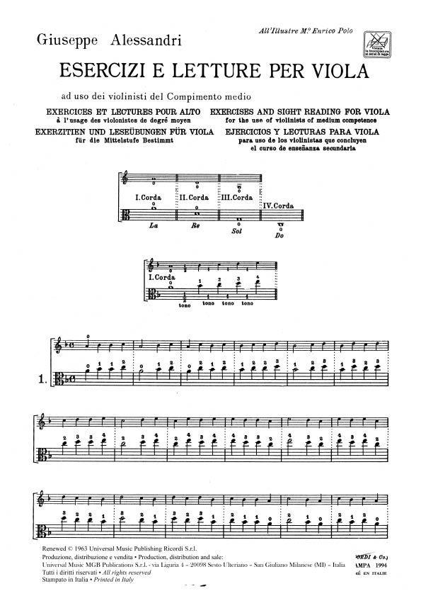 Esercizi E Letture Per Viola Ad Uso Dei Candidati All’Esam E Di 8 Anno Di Vl. ALESSANDRI G.