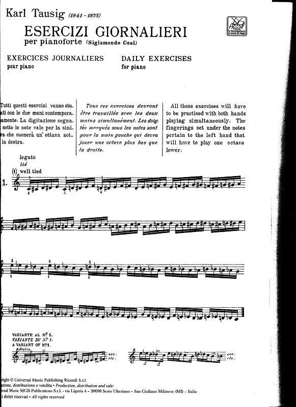 Esercizi Giornalieri Per Pianoforte TAUSIG CARL