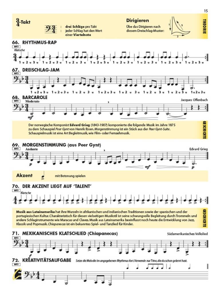 1. Der erste Ton 2. Zähle und spiele 3. Neuer Ton 4. Zu zweit 5. Ein Schritt abwärts 6. Es geht aufwärts 7. So lang wie breit 8. Vier und vier 9. Tiefausläufer 10. Die fantastischen Fünf 11. Noten lesen 12. Der erste Flug 13. Essential Elements-Quiz I 14. Mit dem Strom 15. Rhythmus-Rap I […]