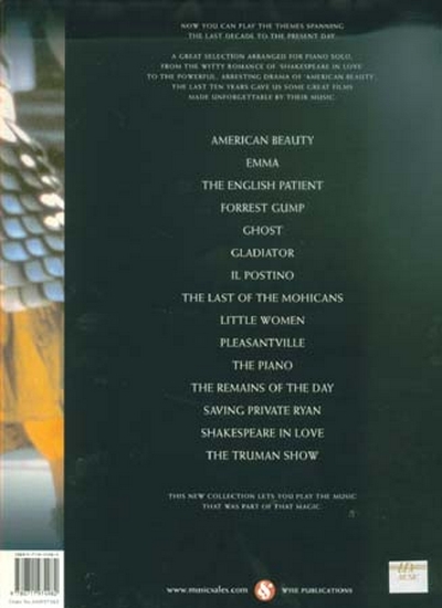 Play a decade of essential film themes from 1990 to 2000. This is a great selection of unforgettable music from unforgettable films, from the witty romance of Shakespeare In Love , to the powerful arresting drama of American Beauty , all arranged for Solo Piano. Suitable for players of intermediate standard.