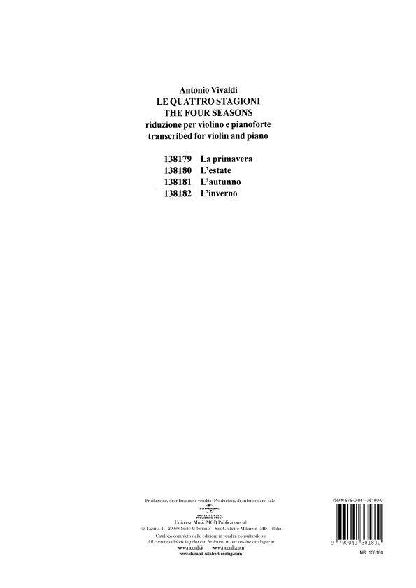 Estate Da Le Quattro Stagioni (Les quatre saisons) VIVALDI ANTONIO