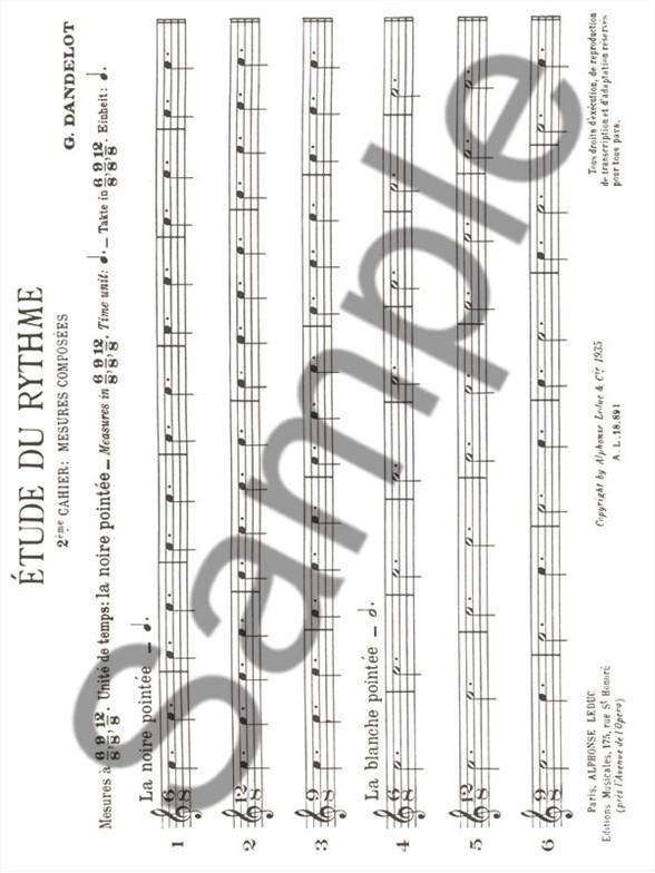 L’Étude du Rythme est un outil éducatif proposé par Georges Dandelot (1895-1975), un compositeur français, qui partage l’idée que le rythme est la base sur laquelle la mélodie et l’harmonie sont ensuite superposées. Il a été conçu pour enseigner progressivement aux musiciens comment gérer des rythmes complexes comme ceux utilisés par Bartók ou Ravel. Ce volume est le deuxième de cinq qui composent une méthode étape par étape pour apprendre et maîtriser le rythme en musique. Il introduit plus de complexité avec des exercices et des mélodies simples. Le troisième devrait aider les pianistes à jouer différents rythmes avec chaque main, et les volumes quatre et cinq utilisent des combinaisons complexes de rythmes et de mélodies, avec des tempos binaires et tertiaires.