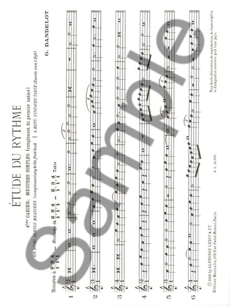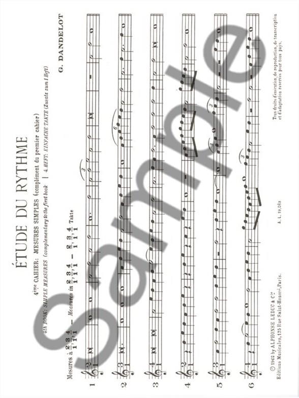 Etude Du Rythme is an educational tool proposed by Georges Dandelot (1895-1975), a French composer, agreeing with the concept that rhythm is the foundation on which melody and harmony are then layered. It was conceived to progressively teach musicians how to deal with complicated rhythms such as those used by Bartok or Ravel. This volume is the fourth out of five composing a step-by-step method to learn and master rhythm in music. It follows on the knowledge acquired in the three first volumes and uses complex combinations of rhythms and melody with binary and tertiary tempos.