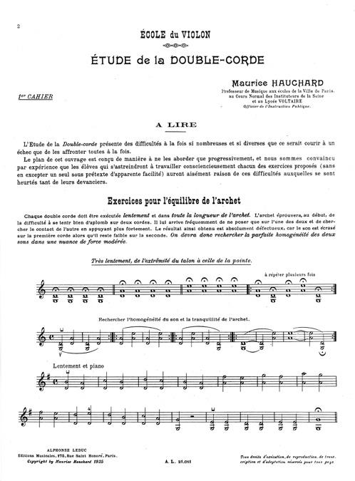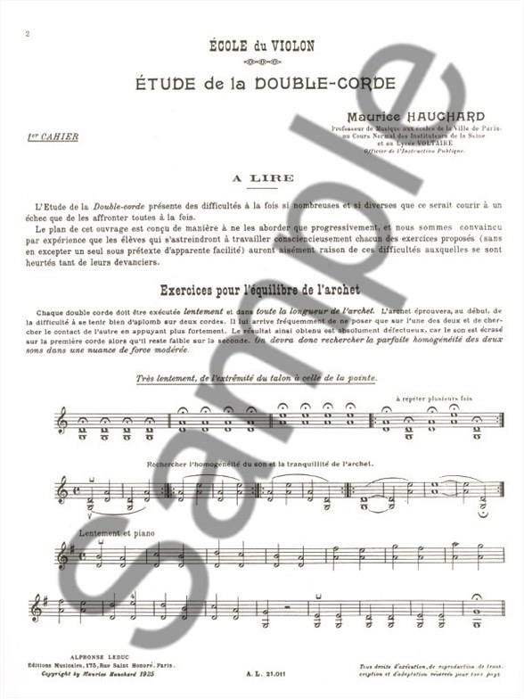 Methodical Study of the Double String & Book 1 was created by Maurice Hauchard (1870-1957), a French violinist, composer and music teacher. This is the first of a series of two constituting a renowned progressive method, for intermediate-beginner violinists to learn how to properly play two string at the same time. Methodical Study of the Double String & Book 1 particularly offers methods and exercises to master a good sonority when playing two strings together. The quality and the efficiency of Maurice Hauchard 's methods make this book a key series to have for a Violin player. In addition to these series, the composer also created nine additional methods for strings.