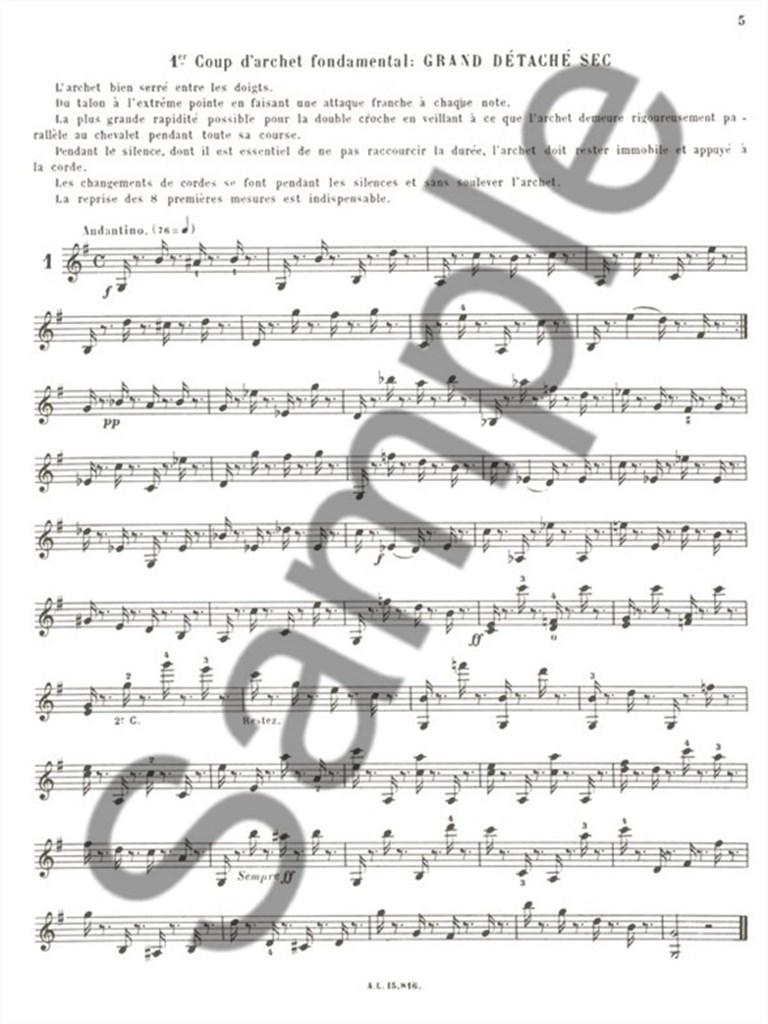 Georges Catherine (1872-1958) is best remembered as a prolific violinist in the orchestra of the Paris Opera. However, he was also a prominent teacher and his Complete Study of the Violin has aided the development of Violin technique since its publication in 1948. The first volume, Study of the Mechanism of the Bow considers all bow markings found in music, and substantial notes on how to address each technique. Each bowing technique is accompanied by a sizeable exercise in order to practise and perfect the technique. Comprising 42 detailed bowing studies, Study of the Mechanism of the Bow from Complete Study of the Violin by Violin virtuoso, Georges Catherine cannot be missed by aspiring players of the instrument.