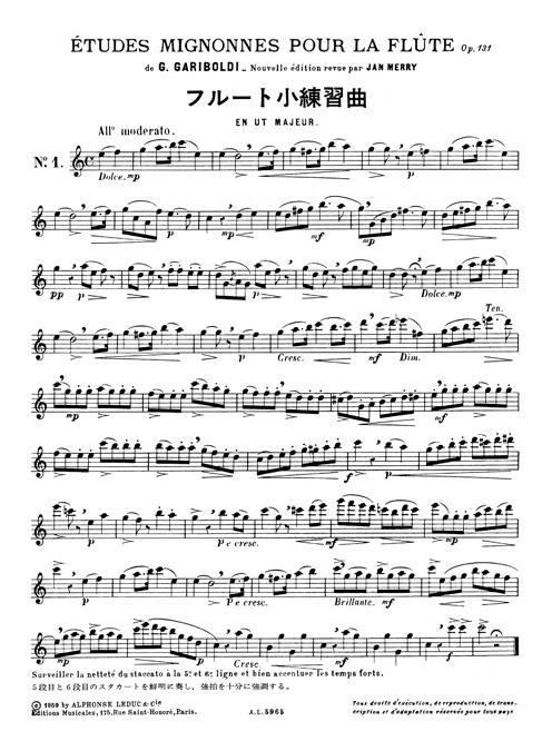 Etudes Mignonnes, Op. 131 by Giuseppe Gariboldi is a series of 20 studies arranged for Flute. Written with growing difficulty, Etudes Mignonnes, Op. 131 are easy for beginners to intermediate players. Giuseppe Gariboldi (1833-1905) is an Italian flautist and composer who wrote numerous pieces for Flute. Most of his study books are still used to teach the Flute, including also '20 Little studies, Op. 132' or 'Daily exercises, Op. 89'.