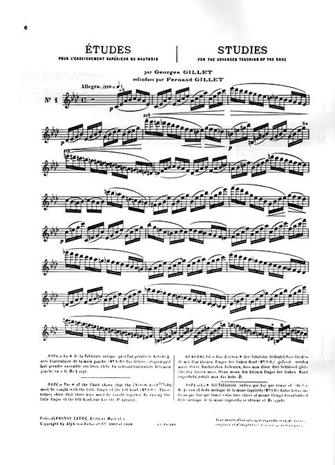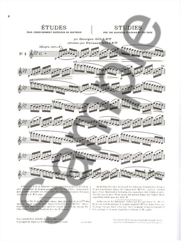With many studies for the Oboe in print, Gillet 's Studies For The Advanced Teaching Of The Oboe is set apart by the significant experience of the composer which informs the compilation. The preface, in which Gillet writes to his pupils, describes the need for new studies in keeping with advanced difficulties encountered in symphonic concerts. His exercises cover a wide range of techniques essential to progression on the Oboe. Moreover, Studies For The Advanced Teaching Of The Oboe also contains a clear, helpful fingering chart, comprising a huge 80 fingerings. The vast variety of studies and fingering charts combined in this volume create an essential bookfor advanced oboists.