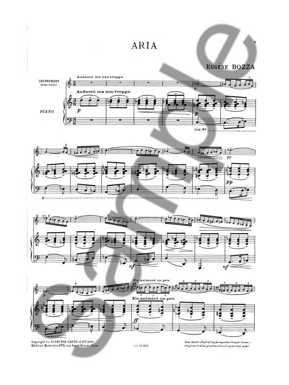 Composer and conductor Eugène Bozza (1905-1991) was a pupil of Henri Büsser and Henri Rabaud at the Conservatoire de Paris, and received the first Prix de Rome in 1934. It was during his stay the Villa Medici that he wrote his Aria Pour Saxophone Alto Et Piano - an adaptation of the third movement of Johan Sebastian Bach's Organ Pastorale in F Major BWV 590, which was to tour the world.