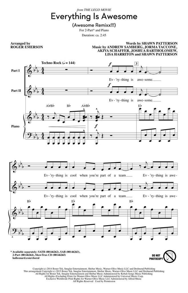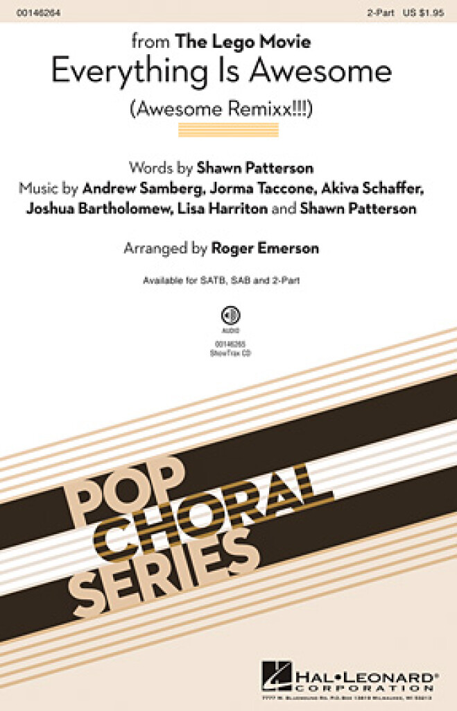 Nominée aux Grammy et aux Oscars, cette chanson irrésistible de The Lego Movie est une vitrine énergique pour les chorales de tous âges. Avec un message optimiste : Tout est cool quand on fait partie d’une équipe et qu’on vit notre rêve, vous ne pouvez pas manquer !