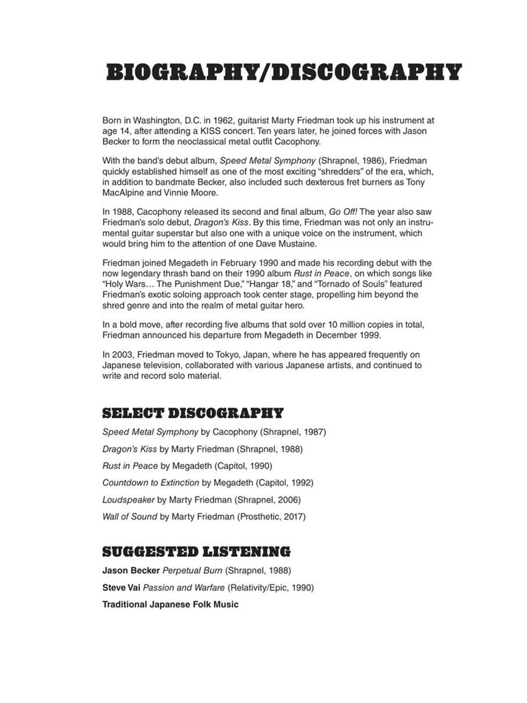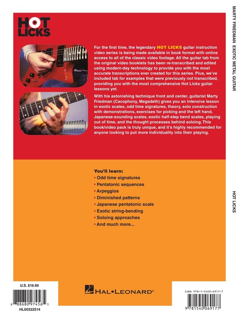For the first time, the legendary Hot Licks guitar instruction video series is being made available in book format with online access to all of the classic video footage. All the guitar tab from the original video booklets has been re-transcribed and edited using modern-day technology to provide you with the most accurate transcriptions ever created for this series. Plus, we've included tab for examples that were previously not transcribed, providing you with the most comprehensive Hot Licks guitar lessons yet! Friedman was best known for his solo albums on Mike Varney's Shrapnel label, and for his duo albums with Jason Becker in Cacophony - and all this before he had spent an extended period as the guitarist in Megadeth. This book will help any metal guitarist add spice and speed to their playing, as Friedman covers unusual scales (Japanese-sounding scales, half-step bend scales, and more) - odd time signatures - picking exercises and even playing out of time. Learn from this unique guitarist!